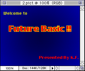 C言語などで今回作成するようなアニメーション表示アプリは結構面倒です。ちょっと画像を表示させたりする場合Future BASICは大変便利です。なんと言ってもPICT画像ハンドルかPICTリソース番号を指定するだけで表示から画面のアップデート(自動更新)まで行ってくれます。