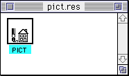 - ペーストすると自動的にPICTリソースになります。この時、PICTリソースの番号は128番になります(後で変更できます)。