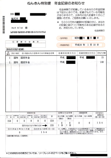 来てしまったんです、私のところに「ねんきん特別便」が・・・
