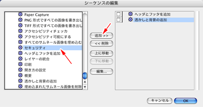 左側のカテゴリリストから「透かしと背景の追加」を選択し、「追加>>」ボタンを押します。