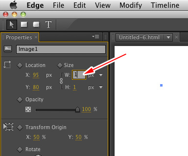 表示領域(クリッピング範囲)を指定する場合は矢印で示すSizeの部分に数値を入力します。ここでは1を指定しています。チェーンボタンをクリックすると縦横のサイズを独立して指定することができるようになります。