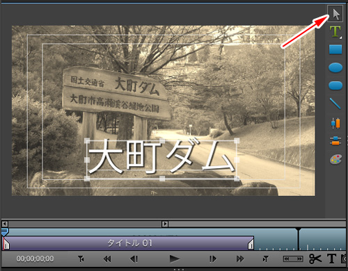あとは矢印ツールをクリックしてタイトル文字の位置をドラッグして変更します。