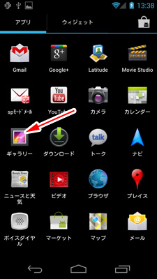 それではキャプチャーした画像を見てみましょう。ホーム画面でアプリのアイコンをタップします。表示されたアプリの中にあるギャラリーをタップします。