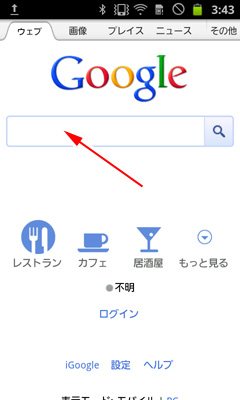 検索ボックス上でタップします。