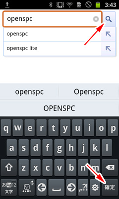 検索履歴とソフトウェアキーボードが表示されます。検索履歴上に表示される項目をタッチして選択するか、キーワードを入力します。入力したらソフトウェアキーボードの確定ボタンをタップするか、検索ボックスの右側にある虫眼鏡のボタンをタップします。