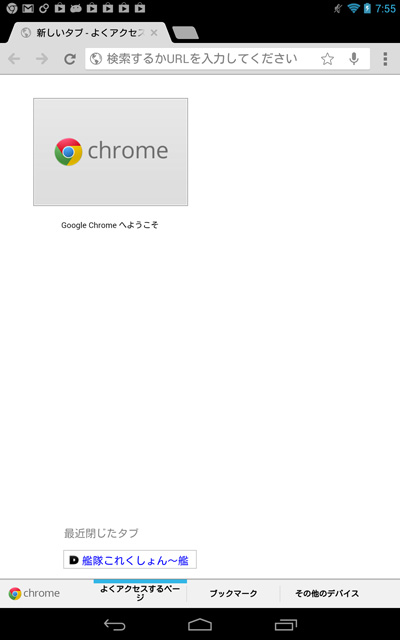 ブラウザが起動します。Nexus 7のブラウザはChromeです。起動するとデフォルトで設定されているページが表示されます。また、Nexus 7にはFirefoxやOperaなど他のブラウザを入れることができます。
