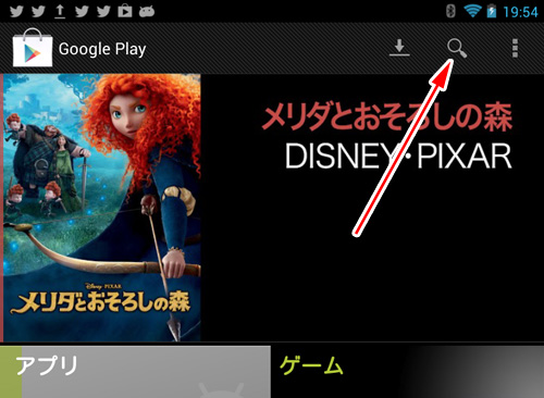 右上にある検索ボタン(虫眼鏡のアイコン)をタッチします。