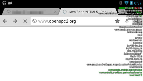 Nexus 7ではCPUの負荷(利用状況)を表示することができます。開発時には多少役立ちます。CPUの負荷を表示するにはホーム画面にある矢印で示すアプリアイコンをタッチします。