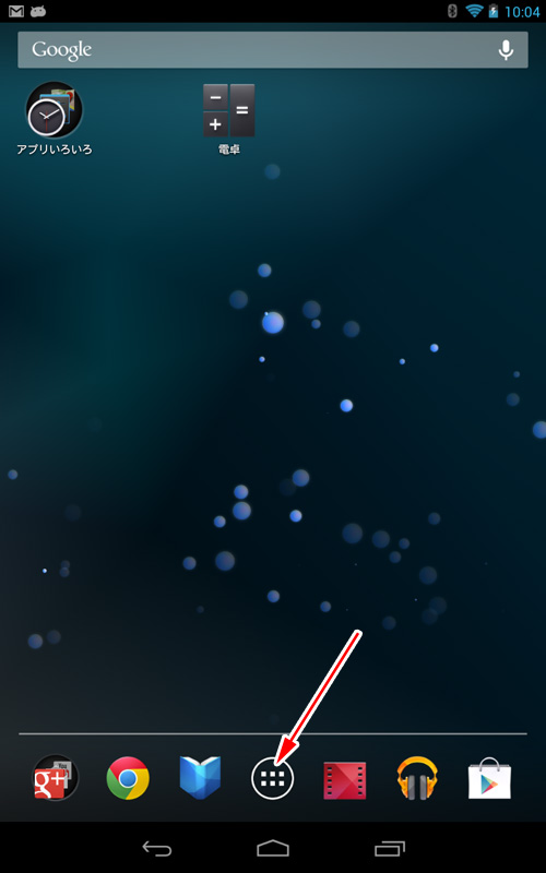 ホーム画面にある矢印で示すアプリアイコンをタッチします。