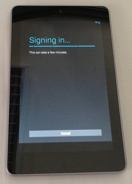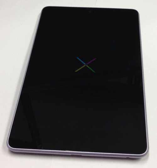 ロゴが表示されます。10秒以上経過しても表示されない場合は、再度電源ボタンを押します。それでも、駄目ならバッテリーがなくなっている可能性がありますので充電してください。充電しても駄目な場合は初期不良の可能性もあります。(こちらのページを