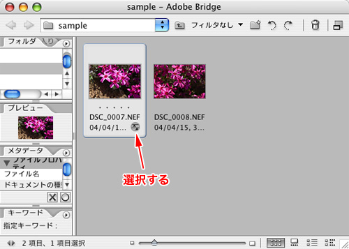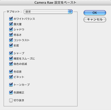 編集メニューから「Camera Raw設定を適用」→「Camera Raw設定をペースト...」を選択します。