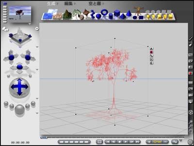 樹木が作成されます。この状態でドラッグすると樹木の位置を変更することができます。ハンドルをドラッグすると樹木のサイズを変更することができます。樹木はレンダリングや表示に時間がかかるので、あまり大量に増やさない方がよいでしょう。大量の樹木や草などを表現したい場合にはBryceよりも