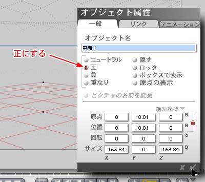 ブーリアン演算を行うので地面は「正」をクリックします。