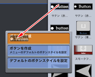 使いたいボタンをメイン画面上にドロップします。そのまま、素早くドロップしても構いませんし、しばらくマウスボタンを押したままにして表示されるメニューで「ボタンを作成」を選択します。