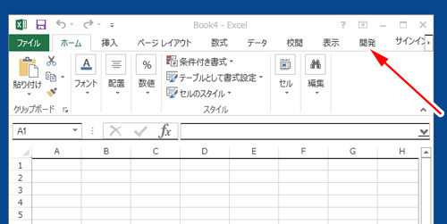 リボンに開発タブが表示されている場合はクリックして起動することもできます。開発タブが表示されていない場合は「