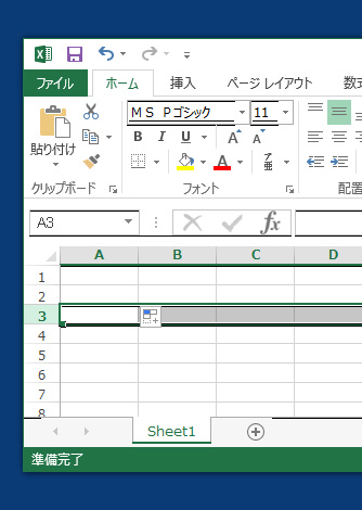 エクセルでは手軽に横一行にセルを選択することができます。ここでは3行目を選択してみます。