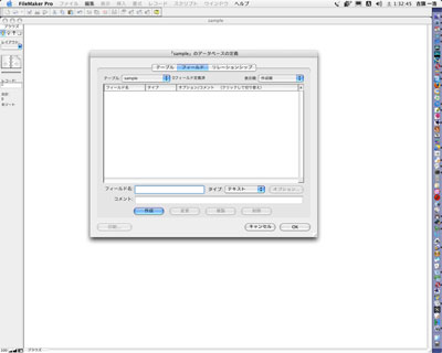 右図のようにフィールドを定義する画面になります。あとはフィールドを定義します。