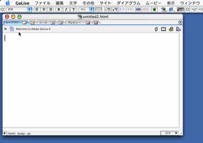 ドキュメントウィンドウ左上のページタイトル文字の上でクリックします。