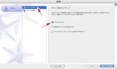 ここでは新たにサイトを作成するので「●ブランクサイト」を選択します。