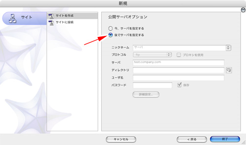Webサイトを公開するサーバーを指定します。後で設定することもできます。ここでは後で設定することにしています。