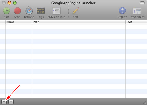 Google App Engine Launcherを起動します。すると以下の図のようなウィンドウが表示されます。