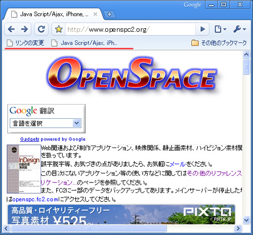ブックマークバーが表示されます。