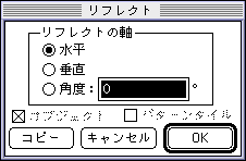| ツールパレットから「回転ツール」を選択します。 時計周りに180度回転させます。回転させるには一度回転の中心をクリックし次にドラッグすると回転させる事ができます。45度や90度など一定の角度にしたい場合は回転中にシフトキーを押します。 | ![]() |