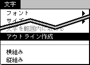 | 文字メニューから「アウトライン作成」を選択します。適当な大きさにしたり変形させます。 |