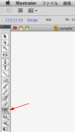 ツールボックスから回転ツールを選択します。