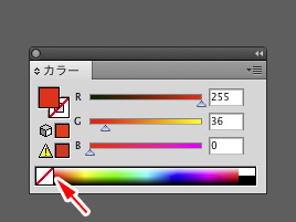 カラーパネルで塗りの色指定領域が線よりも下になっている場合はクリックして前面に出します。