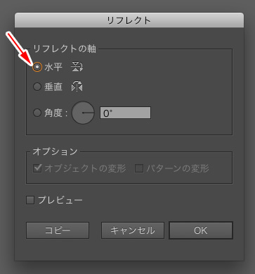 ダイアログが表示されるので反転させる軸や角度を入力します。
