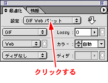最適化パレットにある設定:の横のポップアップをクリックします。