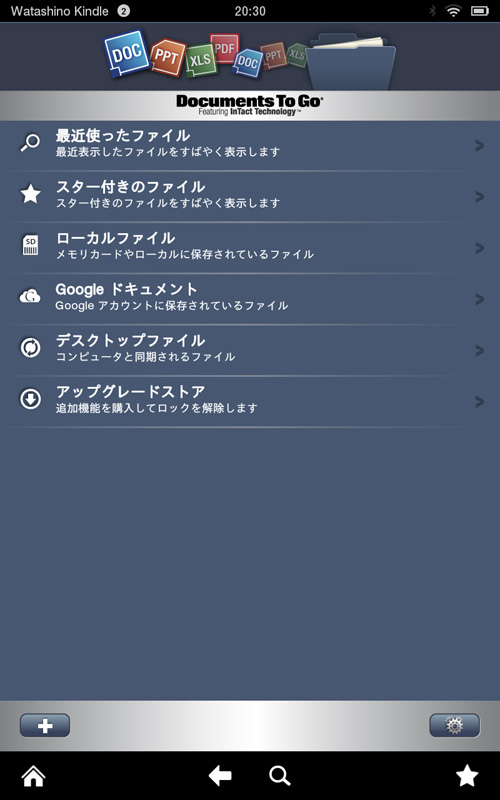 全機能を使えるようにするDocuments To Go Full Version Keyのアプリを起動するには画面上部に表示されている「アプリ」の文字をタッチします。