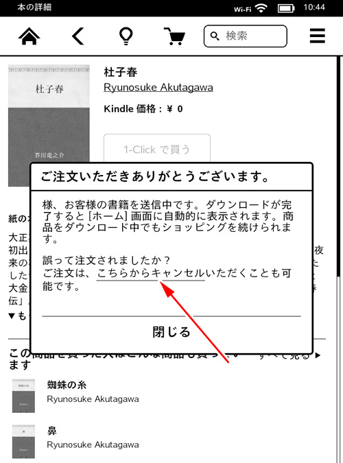 Kindleでは本の購入をキャンセルすることができます。例えば以下の本を間違って「1-Clickで買う」ボタンをタッチしてしまったとします。