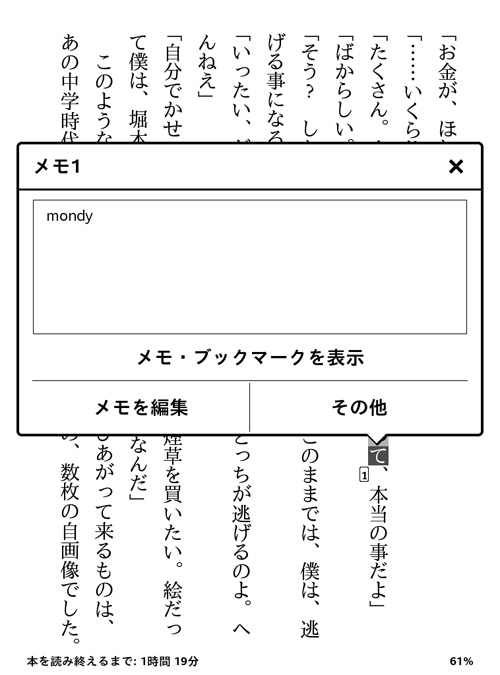Kindleでは文章中のメモを追加することができます。メモしたい文字の上でタッチしたま指を動かし選択します。