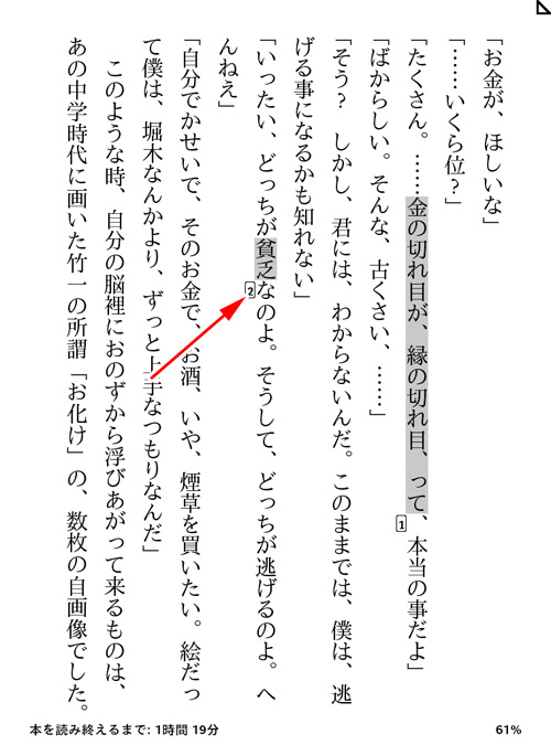 Kindleでは個別にメモを削除することができます。削除したいメモ番号の上でタッチします。