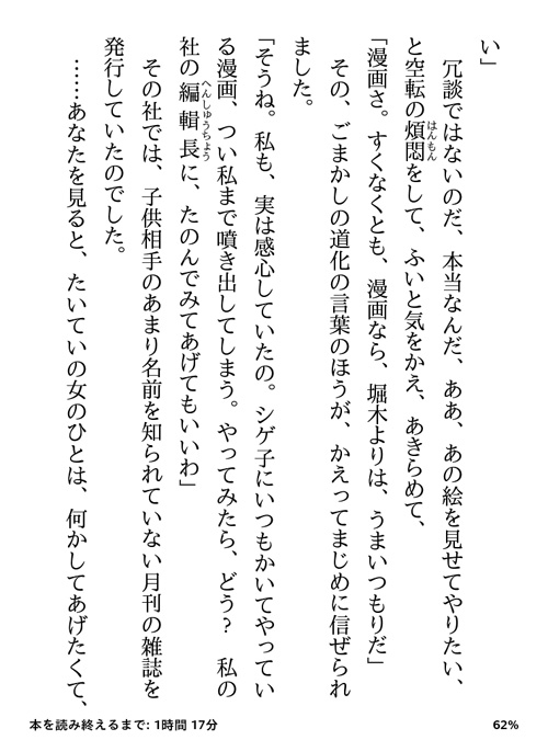 Kindleでは文章内の文字や単語などを検索することができます。まず、画面上部をタッチしてツールバーを表示します。