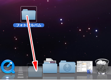 Stacksを利用するにはフォルダをドックにドラッグして登録します。