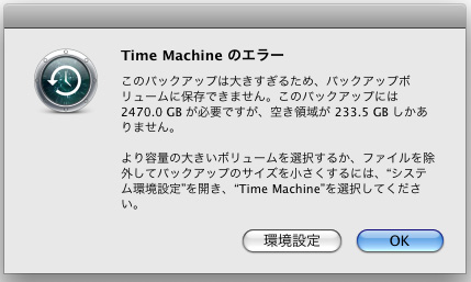 バックアップ先のディスクに空き容量がない場合には右図のようなダイアログが表示されます。