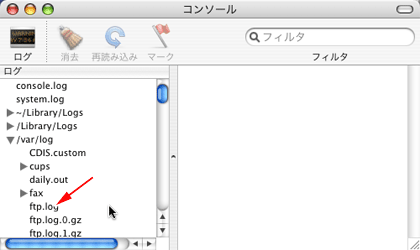 | ftp.logで始まるファイルがftpのログファイルになります。見たいログファイル名をクリックします。 |