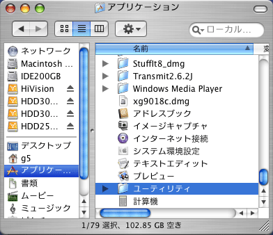 | アプリケーションフォルダ内にあるユーティリティフォルダをダブルクリックして開きます。 |
