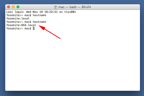 ホスト名を表示するにはhostnameコマンドを使います。ターミナルでhostnameと入力します。