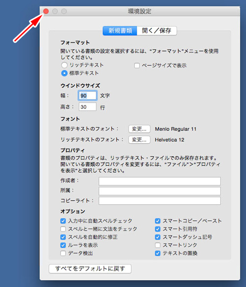 環境設定ダイアログが表示されます。フォーマットのカテゴリで「○標準テキスト」のラジオボタンをクリックします。