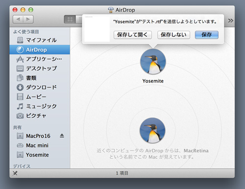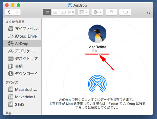 AirDropに対応した機器があると図のように相手のユーザーアイコンが表示されます。