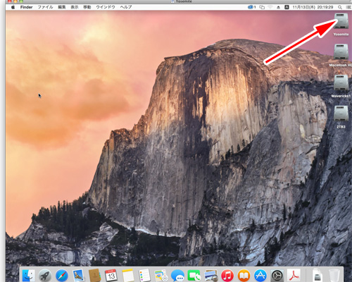 ハードディスクのアイコンをダブルクリックします。ハードディスクのアイコンが表示されていない場合はファインダーの設定を変更してください。
