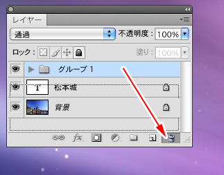 削除したいグループをレイヤーパレット上のゴミ箱アイコンを上にドラッグドロップします。