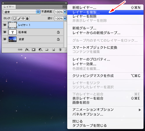 ポップアップメニューから「レイヤーを複製...」を選択します。