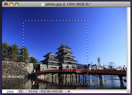 ツールボックスから矢印で示す長方形選択ツールを選択します。