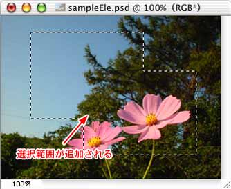 SHIFTキーを押したまま追加したい部分でドラッグします。