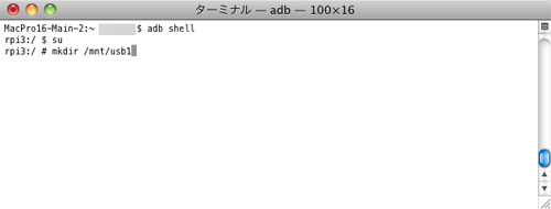 mkdir /mnt/usb1と入力しリターンキーを押します。usb1は好きな名前にしても構いません。